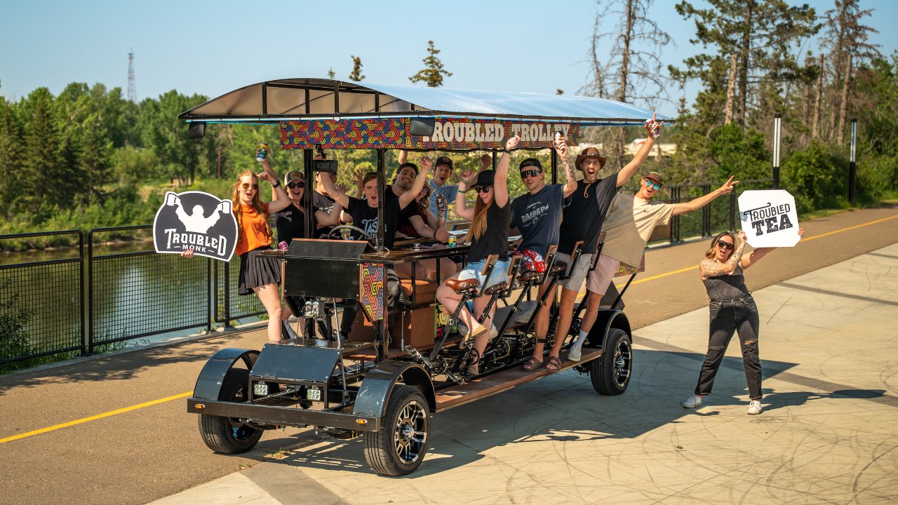 It’s a pedal-powered party, a rolling hangout, a full-squad mission through Red Deer’s best corners of the city.The Troubled Trolley is built for birthdays, breakups, team bonding, or just because-it’s-Tuesday kind of nights.You bring the crew. We bring the wheels, the beats, and just enough chaos.
